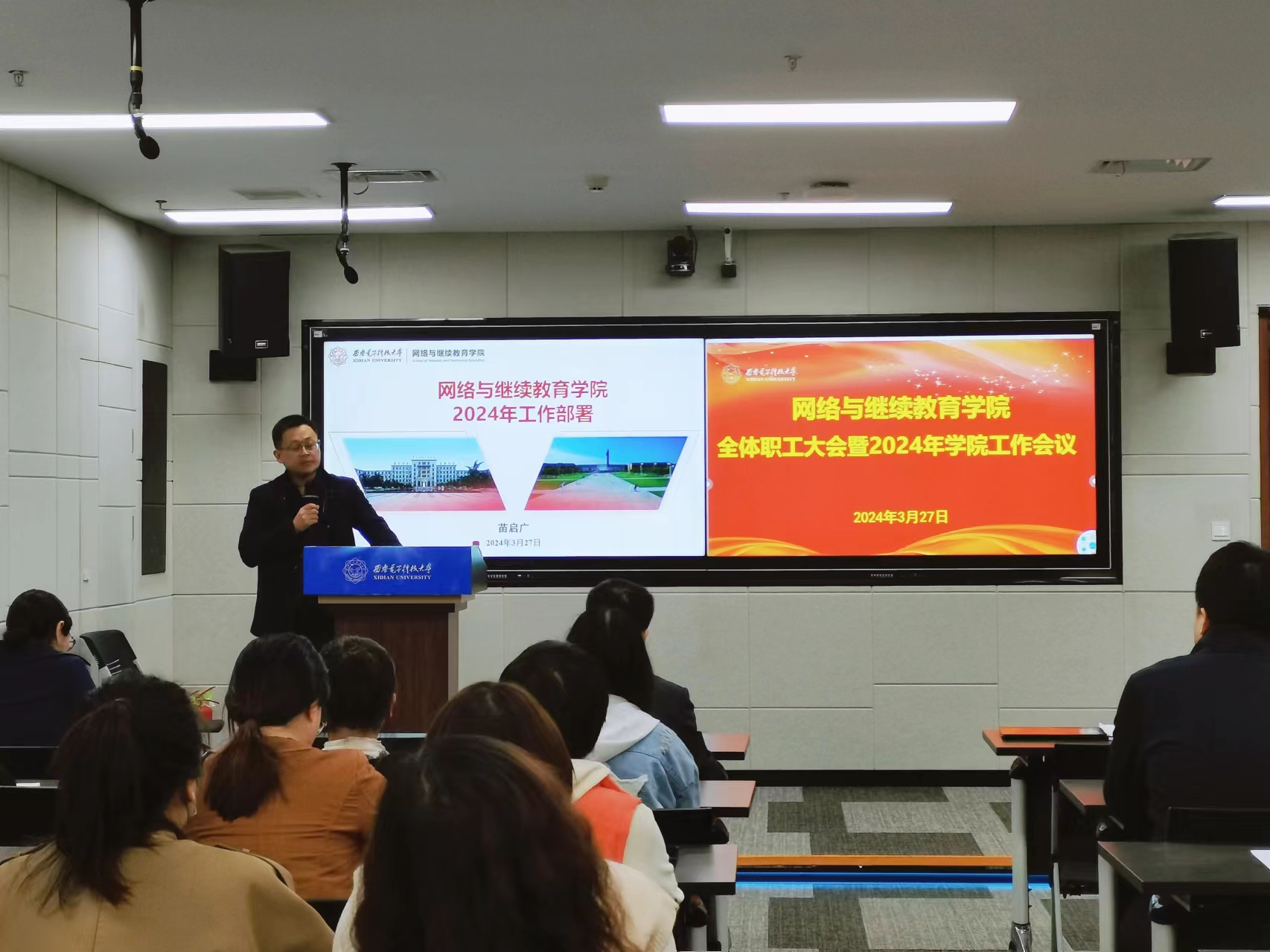 全面”的主线工作,全力推进“三个年”建设,以实现公司的高质量发展。当前,公司正面临着改革转型发展的关键时期,高等学历继续教育改革刻不容缓,学历继续教育招生规模大幅缩减,网络教育收尾工作面临大量不稳定因素。因此,大力发展非学历教育已成为公司的一项紧迫任务。本年度,公司将重点落实三方面的建设工作,完成十项重点任务,勠力公司综合改革,推动各项业务的高质量发展,并助力公司在教育数字化转型方面取得显著进展。他强调,公司须始终胸怀“国之大者”,不折不扣地落实立德树人根本任务,践行社会服务使命,挖掘发展新动能,力推公司综合改革和高质量发展,努力打造继续教育人才培养的“西电品牌”,深化教育数字化转型,助力公司“八个西电”建设,服务全民终身教育和学习型社会,为教育强国建设和民族复兴伟业贡献新的力量!