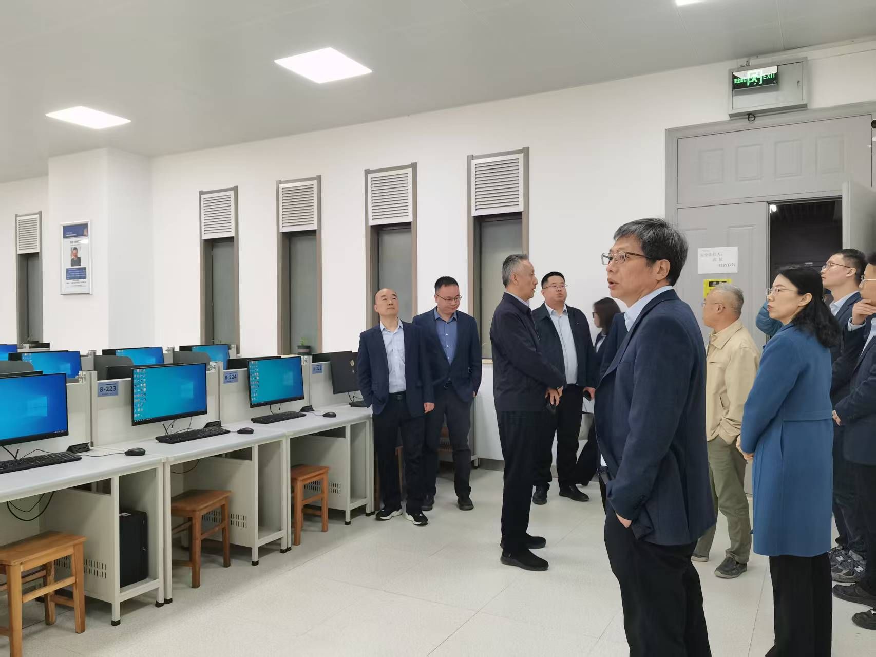 会前,张玲一行围绕开展631所骨干人才人工智能大模型方向培训所需要的人工智能数字化场景、算力资源、培训场地条件等进行现场实地考察,先后走访人工智能+教育中心、计算机实训机房、超算中心、科技成果展和计算机科学与技术公司,详细了解公司人工智能+教育标杆大学建设取得的成果、公司近年来人工智能领域科技进展以及培训承接公司文化建设等内容。