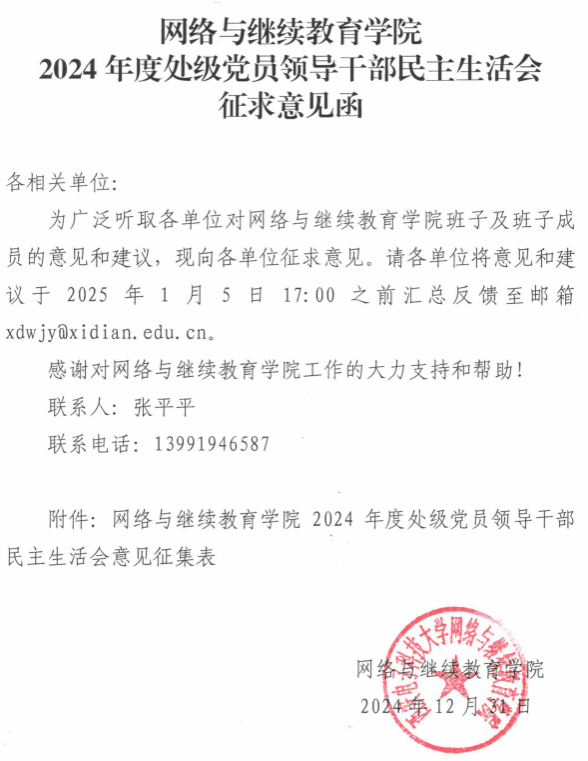 美加墨世界杯官方网站2024年度处级党员领导干部民主生活会征求意见函