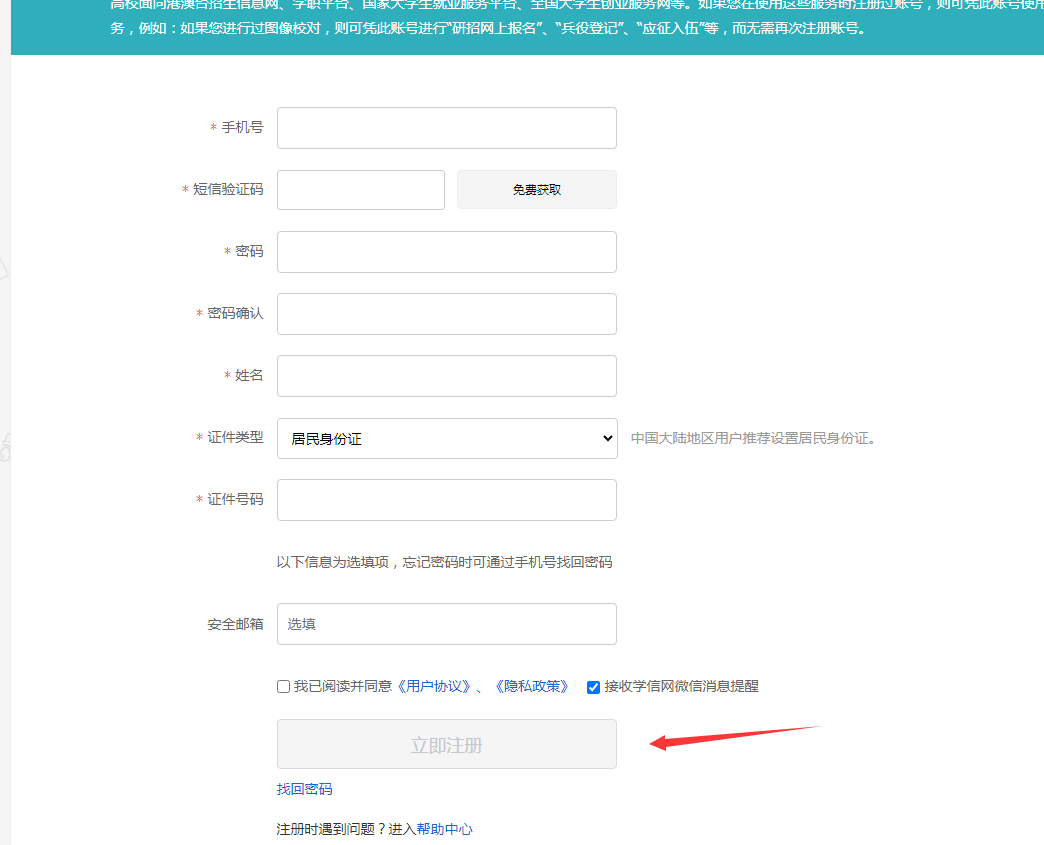 第四步:填写实名信息,立即注册。