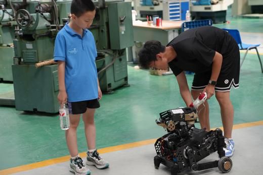 为了让小朋友们更深入地了解机器人竞技的魅力,创造营特别邀请了IRobot战队亲授竞赛技巧、解析冠军案例。小朋友们近距离欣赏机器人的酷炫硬朗造型,感受弹丸倾泻的打击感和紧张刺激的策略博弈,仿佛将孩子们带入了激烈的比赛现场,完成了一场机器人与小朋友的“狂欢派对”!